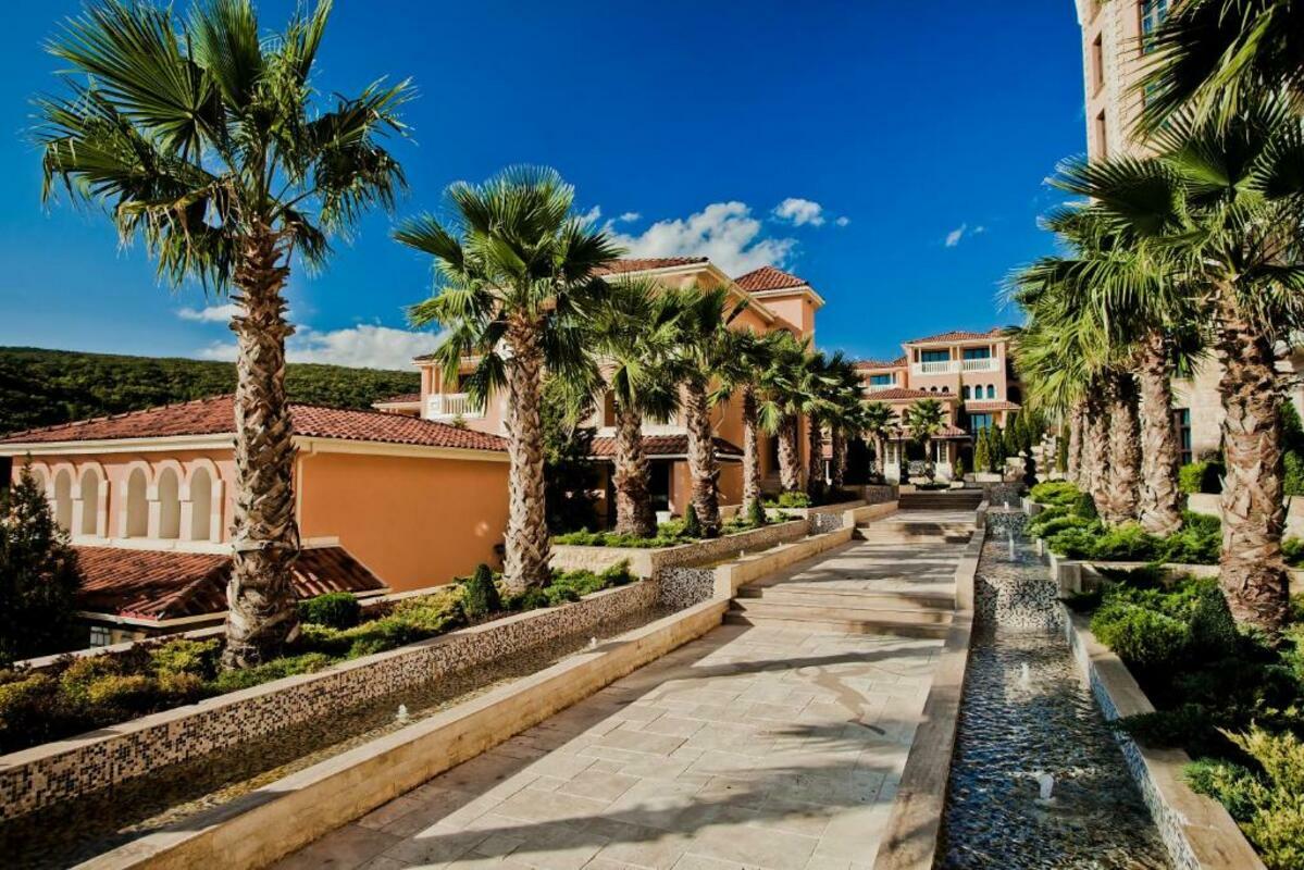 Built in 2010. 45 villas, 24h Reception, rent-a-car, free wireless Internet in all areas. Main restaurant, Rotunda Restaurant (for private events at Hotel Royal Castle), Lobby bar Zodiac, Pool bar Fountain (extra charge), Piano bar Millennium (extra charge), Winer Castle (extra charge), Macundo Club (extra charge) – all bars are at Hotel Royal Castle, free Wi-Fi, luggage storage, outdoor and indoor(heated) swimming pools. In the complex: Aqua Park, 2 Conference halls in Royal Castle.