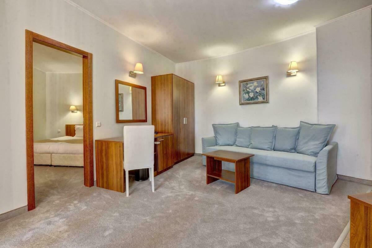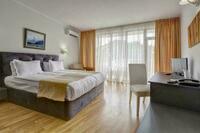 APARTAMENT WITH SEA VIEW (max.2+2/3+1/3+0): Bedroom and living room, with an intermediate door between the two rooms, convenient for families with children. Living room with large sofa bed. Rooms are equipped with air conditioning, satellite TV, mini bar (extra charge and on request), internet (free wi-fi), electronic locking system and balcony. The bathrooms are equipped with a bathtub, hairdryer, SOS button, towels and hotel cosmetics. Electric kettle. Safe in the room. Maximum occupancy 3 adults and 1 child. Sea view.