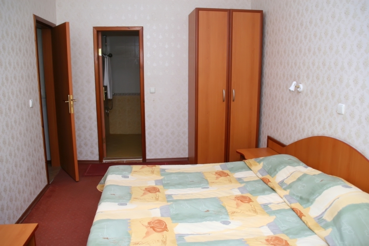 6 Family apartments (min.2+0/max.2+3/5+0). It consists of 2 rooms and a corridor, 1 double bed and 3 single beds. Now, there are rooms with a door and without a door. One bathroom.