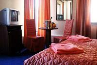 Двухместный номер эконом: около 30 кв.м. - номера расположены -1 этаже и имеют одну двуспальную кровать или две односпальные кровати, телевизор, телефон, шкаф, письменный стол, беспроводной доступ в интернет, мини-бар и собственную ванную комнату с душ кабиной.